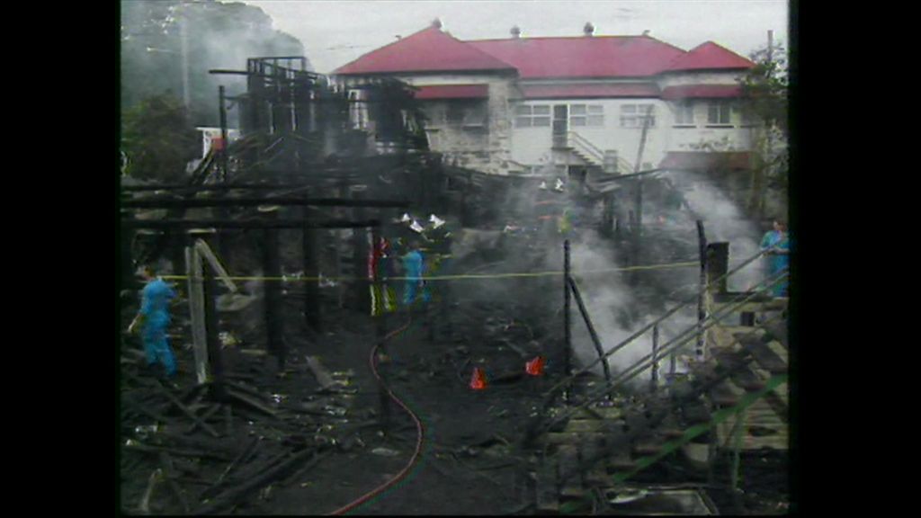 The ABC's report in 1990 of the Oakdale Guest House fire at Ipswich that killed five men.