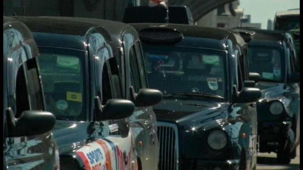 Has Video Duration: 3 minutes 58 seconds.Black cabs blockade bridge in Olympics protest