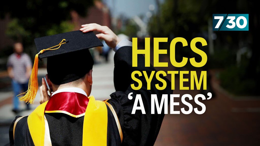 Photo shows A woman with short brown hair and glasses looking down at her notes behind a lectern with two microphones.Promises to overhaul HECS system